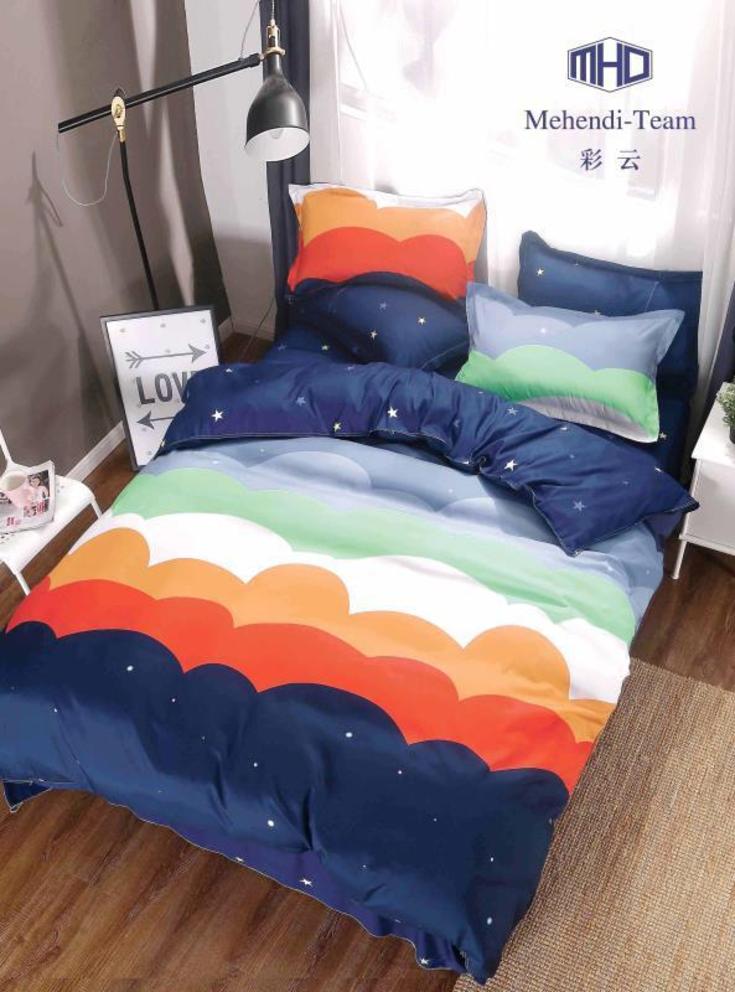 1,5 спальное постельное бельё.Пододеяльник - 1шт (180х220 см); Простыня - 1 шт (180х220 см); Наволочки - 2 шт (70х70 см).Замена рисунка и расцветки.