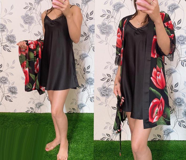 Шелковый комплект халат и сорочка #20250601