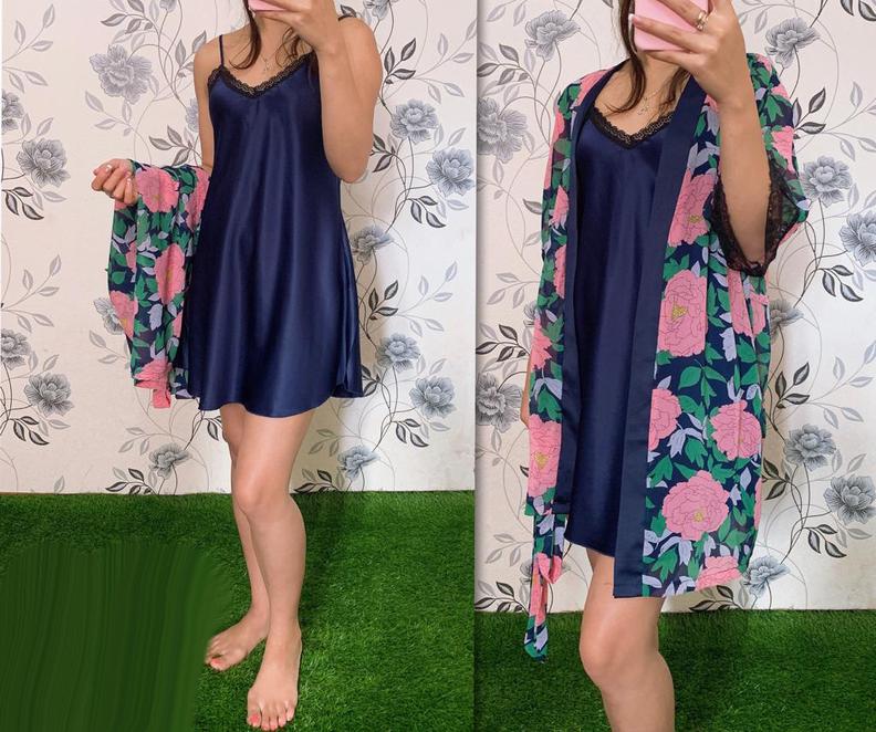 Шелковый комплект халат и сорочка #20250602