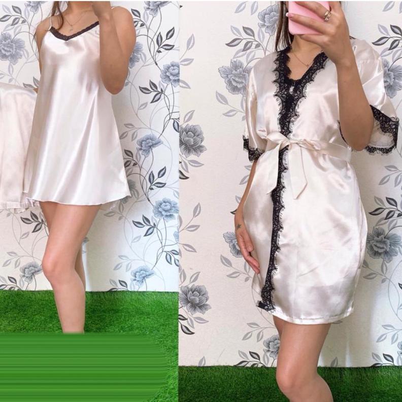 Шелковый комплект халат и сорочка #20282756