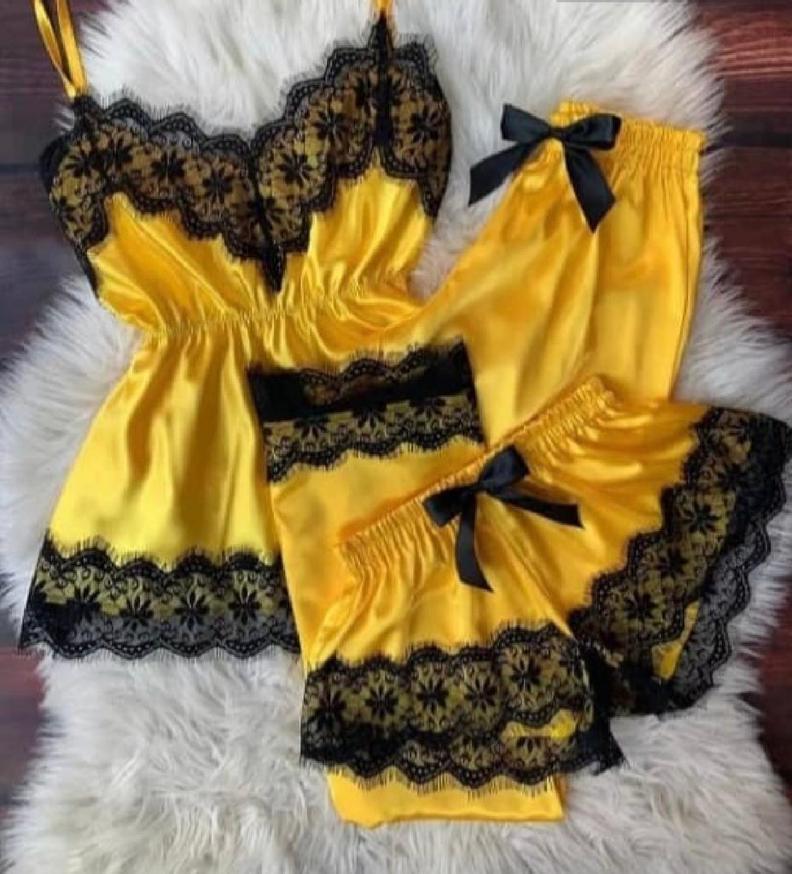 Шелковый комплект топ шорты и брюки #20322167