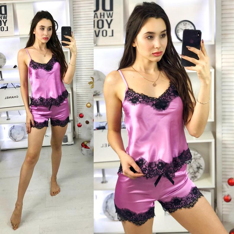 Шелковый комплект топ и шорты #20330486