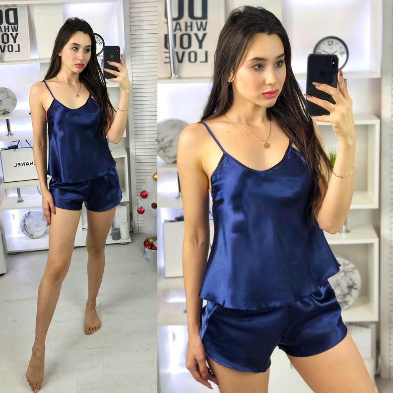 Шелковый комплект топ и шорты #20330488