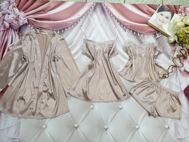 Шелковый комплект халат,сорочка, топ и шорты #20353553
