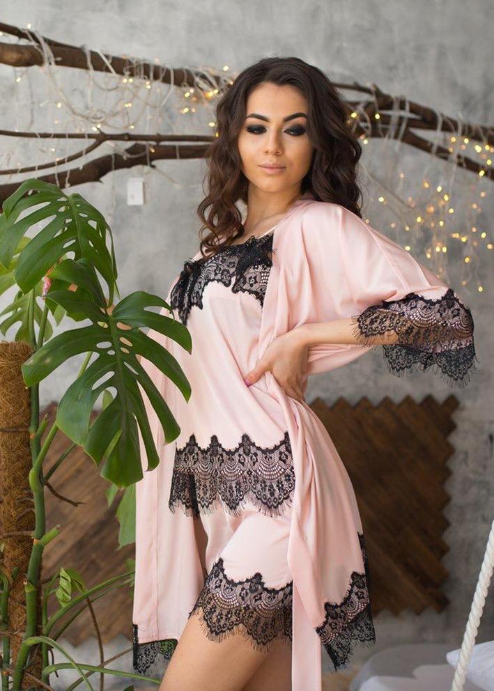 Шелковый комплект халат, топ и шорты #20373119