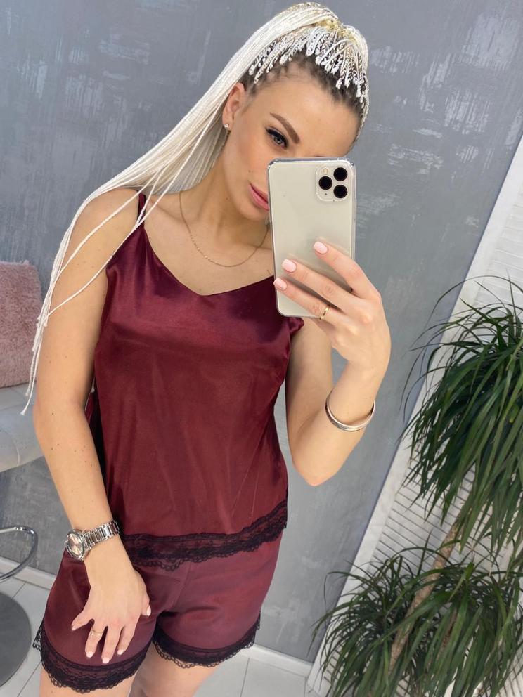 Шелковый комплект бюстгальтер, топ и шорты #20382412