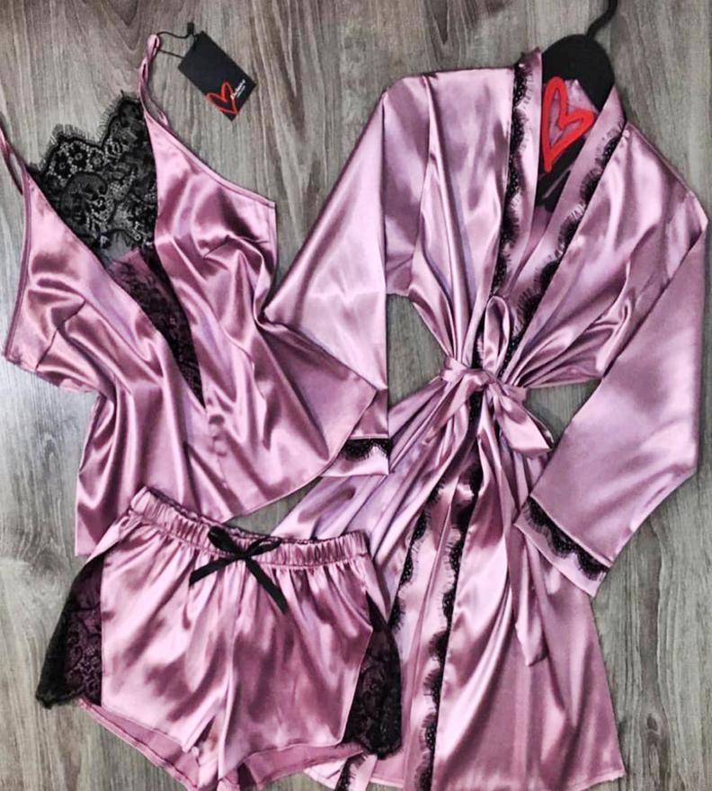 Шелковый комплект халат, топ и шорты #20409190