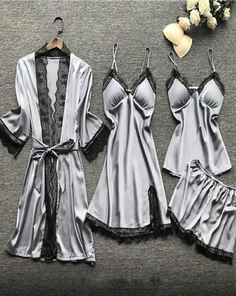 Шелковый комплект халат, сорочка, топ и штаны #20423862