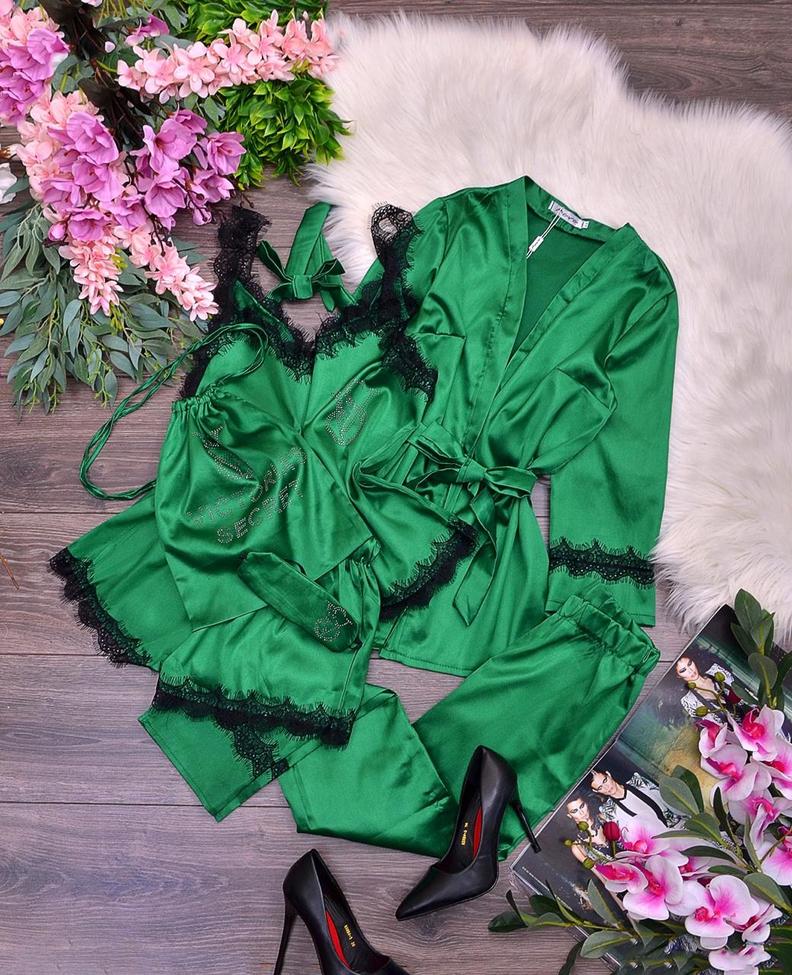 Шелковый комплект халат, топ, шорты и штаны #20431129