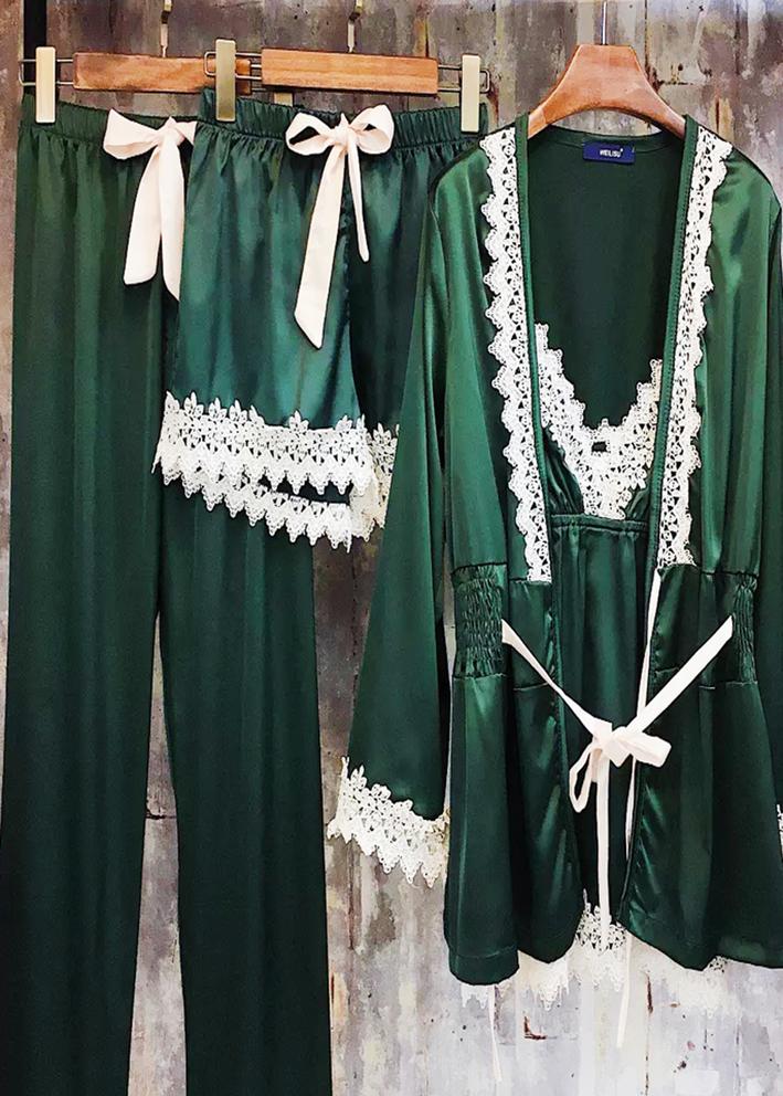 Шелковый комплект халат, топ, шорты и штаны #20434373