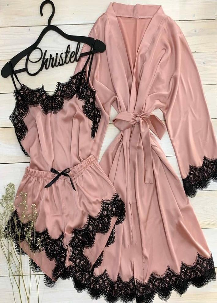 Шелковый комплект халат, топ и шорты #20440609