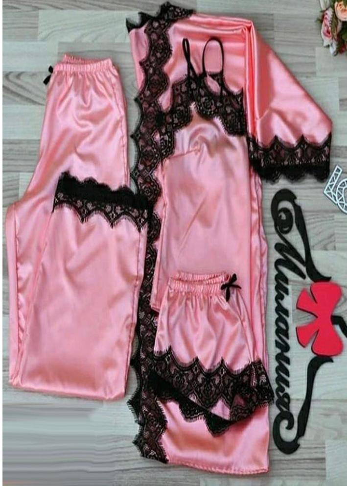 Шелковый комплект халат, топ, шорты и штаны #20441689
