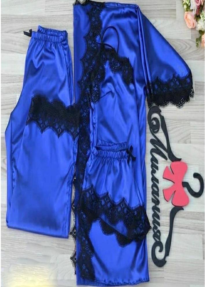Шелковый комплект халат, топ, шорты и штаны #20441691