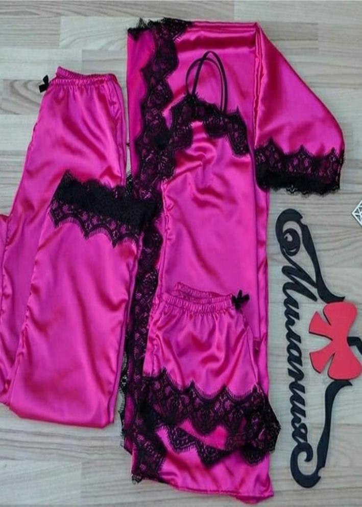 Шелковый комплект халат, топ, шорты и штаны #20441694