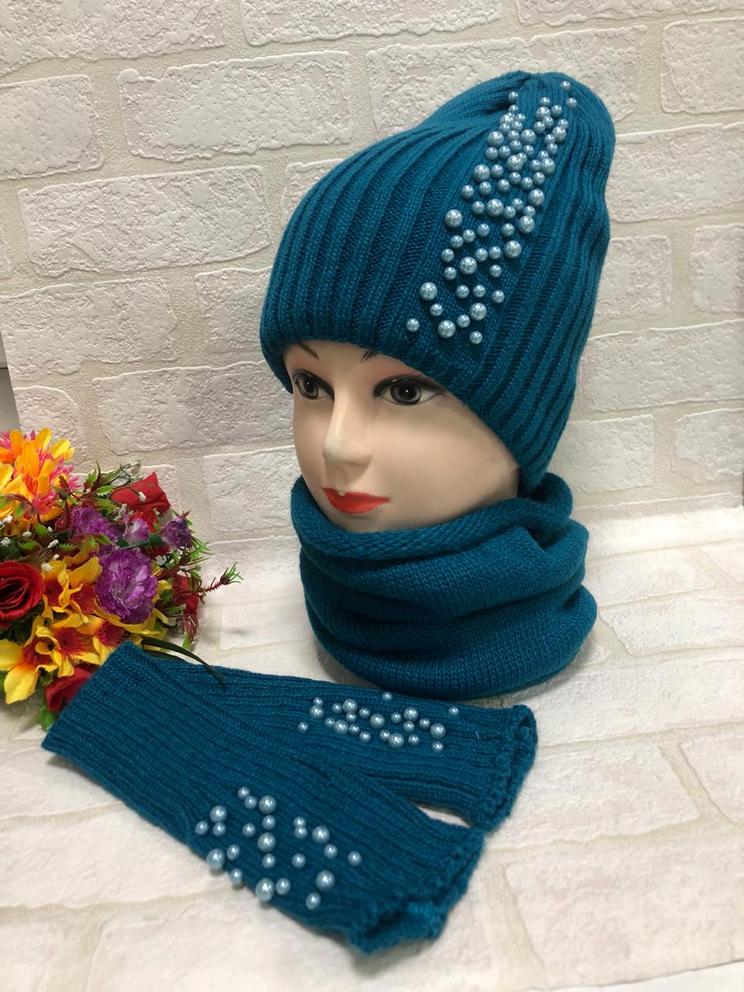 Шапка шарф и митенки #20298821